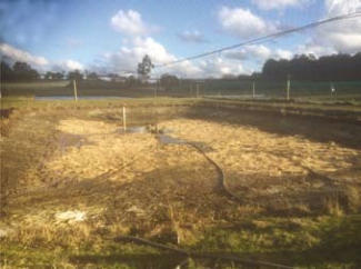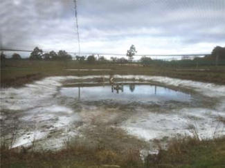 Figure 2: a weedy pond, allowed to dry, weed then raked